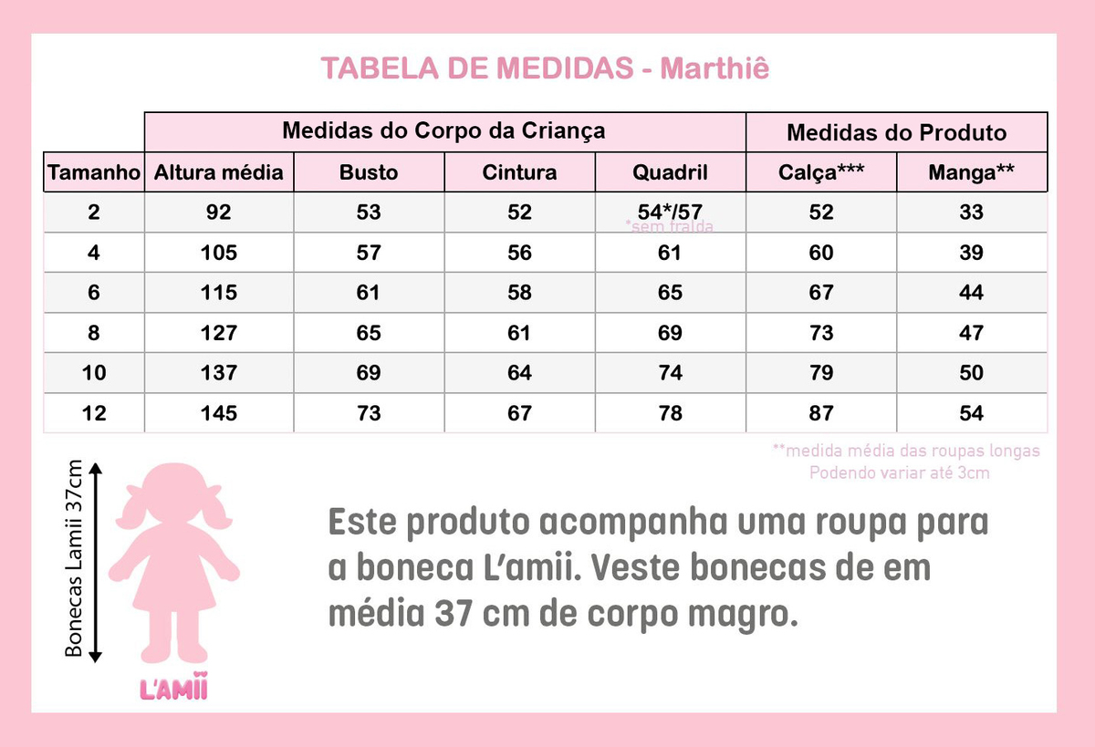 * Acompanha a roupinha igualzinha para a boneca